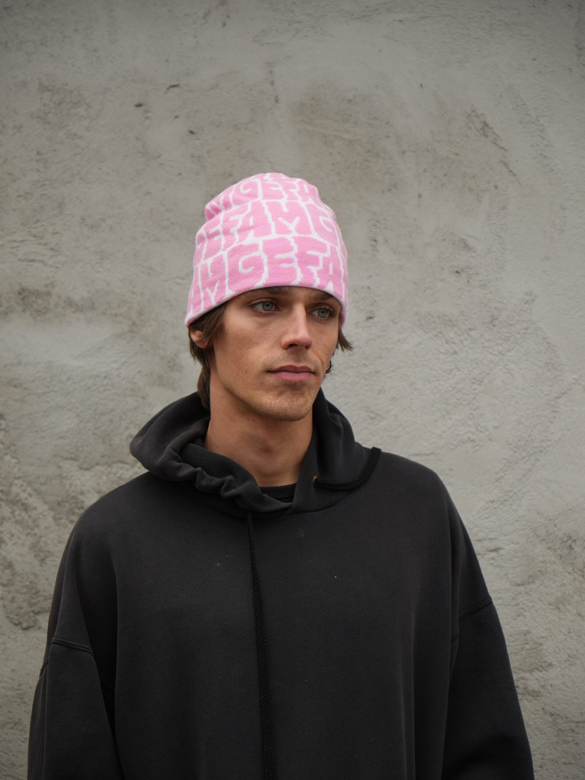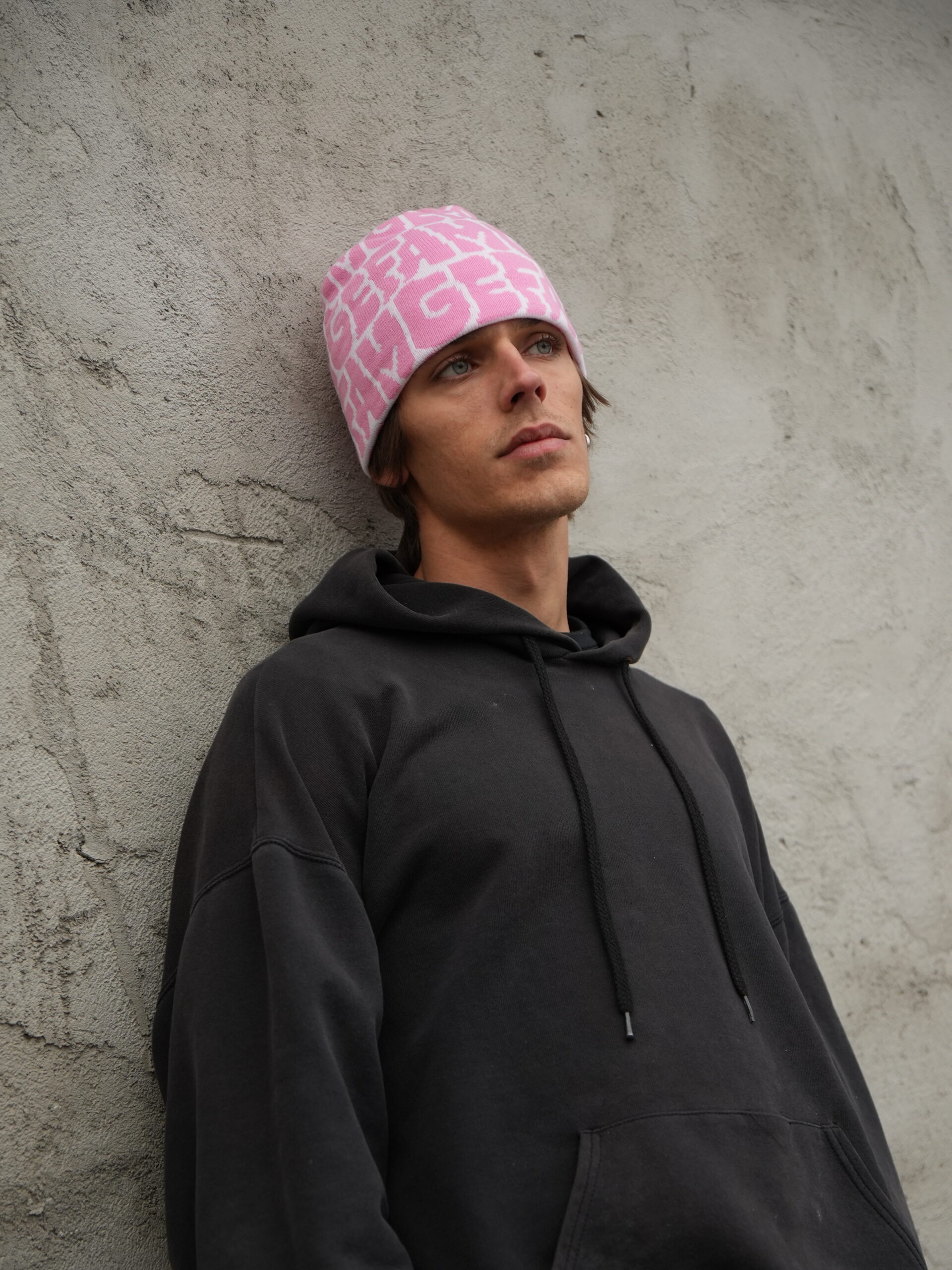 *Please note, this is a new rendition of our signature pink beanie. We have changed the pink yarn, removed the fold and increased quality.